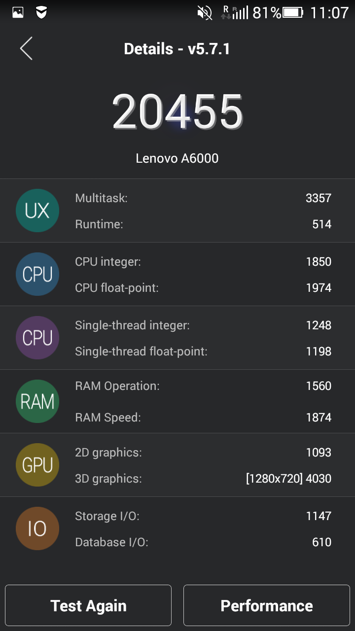 Processor and RAM: In Era of 64 bit processors , Snapdragon already offered 200 and 400Soc it’s good to see the performance of snapdragon 410 Soc in Lenovo A6000 plus. For multitasking and runtime operation 3357 points and 514 respectively which are fair enough for the price. RAM is sufficient for playing high end game Fifa 14 and Asphalt 8 .